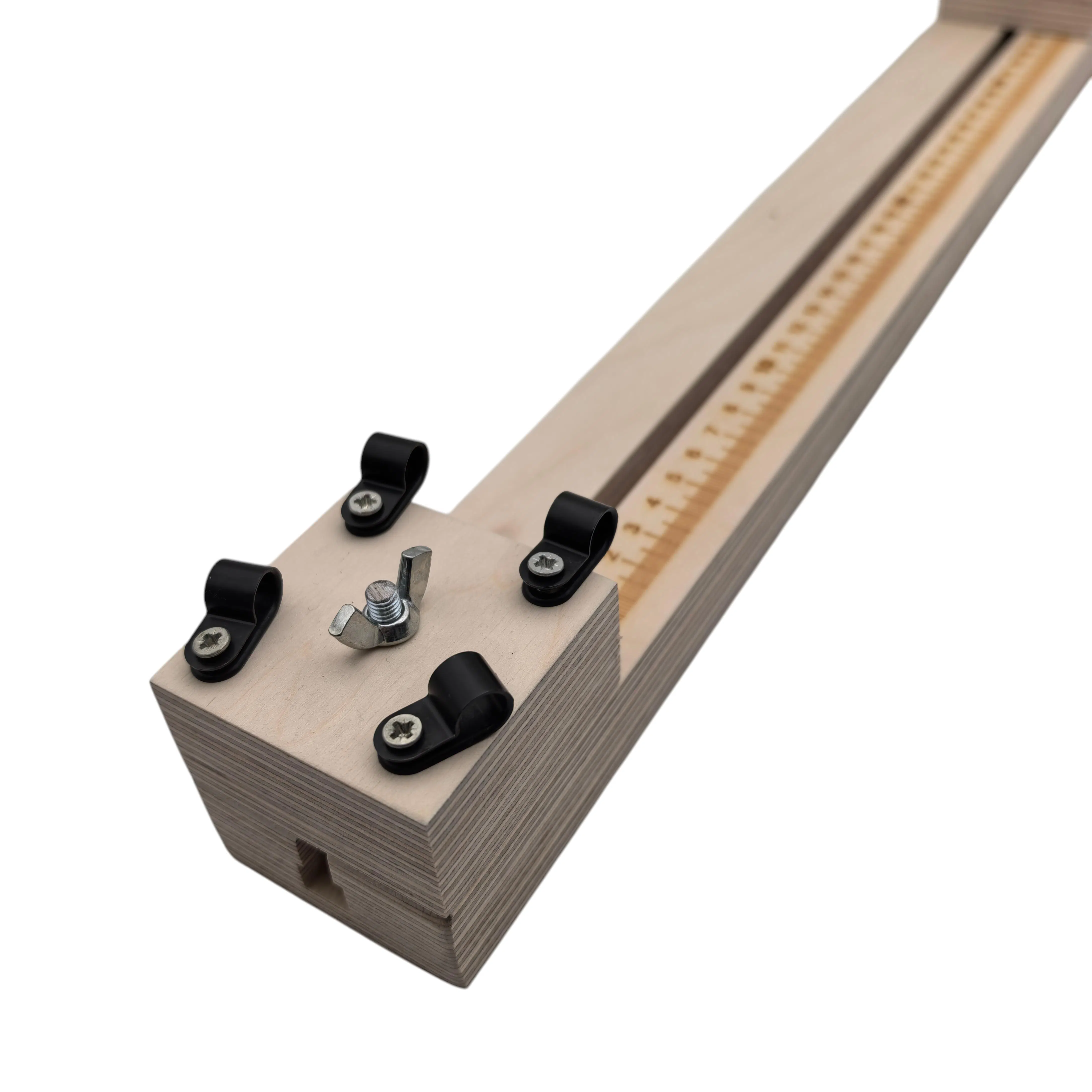Lazer İşleme Cetvel: Örgü boyunu hatasız ayarlamanız için tahtaya işlenmiş, silinmez lazer cetvel.